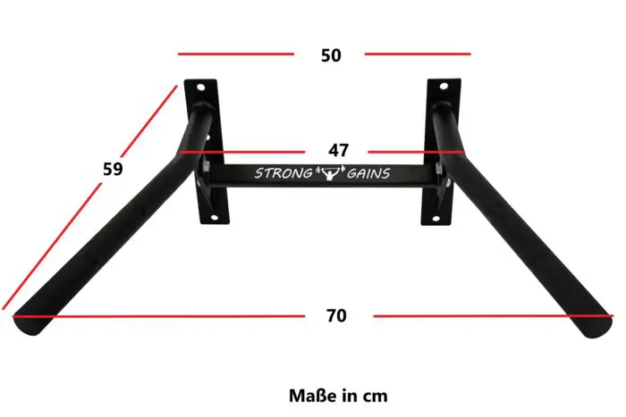 Dips gelten zu Recht als eine der besten Drückübungen und sind perfekt geeignet um eine starke Brust, Trizeps und Schultermuskulatur aufzubauen. Die STRONG GAINS DB1 Dipstation ist extrem stabil, funktional und leicht zu montieren. Dank der V-Form der Stangen ist für jeden die richtige Breite dabei. Die gerändelten Griffe sorgen für einen starken Halt während des Trainings. Die 5 mm Dicken Flachstahlstreben und die gerändelten Stangen mit einem Durchmesser von 38/2 mm, halten jeder Belastung stand und sind absolut windungssteif. Mit einer maximalen Belastbarkeit von 300 Kg, können auch Dips mit hohem Zusatzgewicht problemlos ausgeführt werden. Dank des mitgelieferten Montagematerials ist das anbringen an die Wand schnell erledigt.