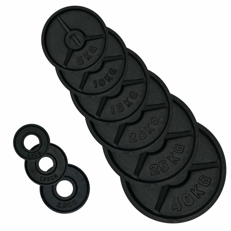 Bei den Hantelscheiben muss der Innendurchmesser zum Aufnahmedurchmesser der Langhantel passen. Das heißt für die Olympia Langhantel mit 50 mm Aufnahmedurchmesser, muss der Innendurchmesser 51 mm betragen und für die einfache Langhantel mit 30 mm Aufnahmedurchmesser muss der Innendurchmesser der Hantelscheiben 31 mm betragen. Folgende Hantelscheiben brauchst du: 2 mal 20 Kg , 4 mal 10 Kg , 2 mal 5 Kg, sowie 2 mal 2,5 Kg und 2 mal 1,25 Kg Hantelscheiben . Damit hat man insgesamt 97,5 Kg an Gewichten. Dazu kommt das Gewicht der Langhantel, damit ist man auch für die schweren Grundübungen, für den Anfang, gut gerüstet.
